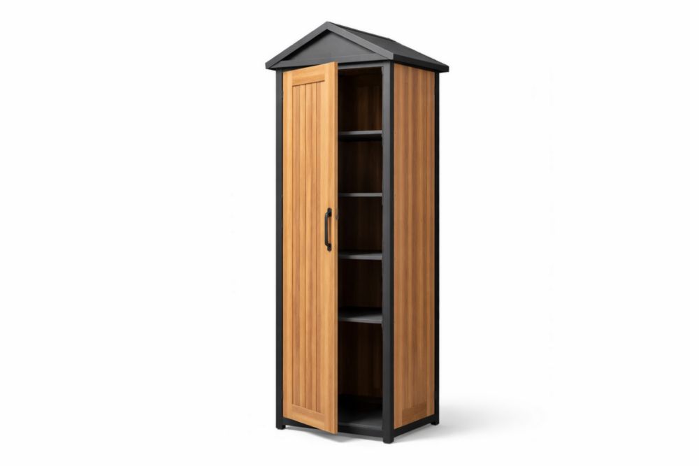 Armoire de rangement haute fabriquée en polypropylène résistant, pour une utilisation extérieure. Dotée de dimensions de 190 cm de hauteur, 68 cm de largeur et 45 cm de profondeur, cette armoire pèse 12.5 kg.