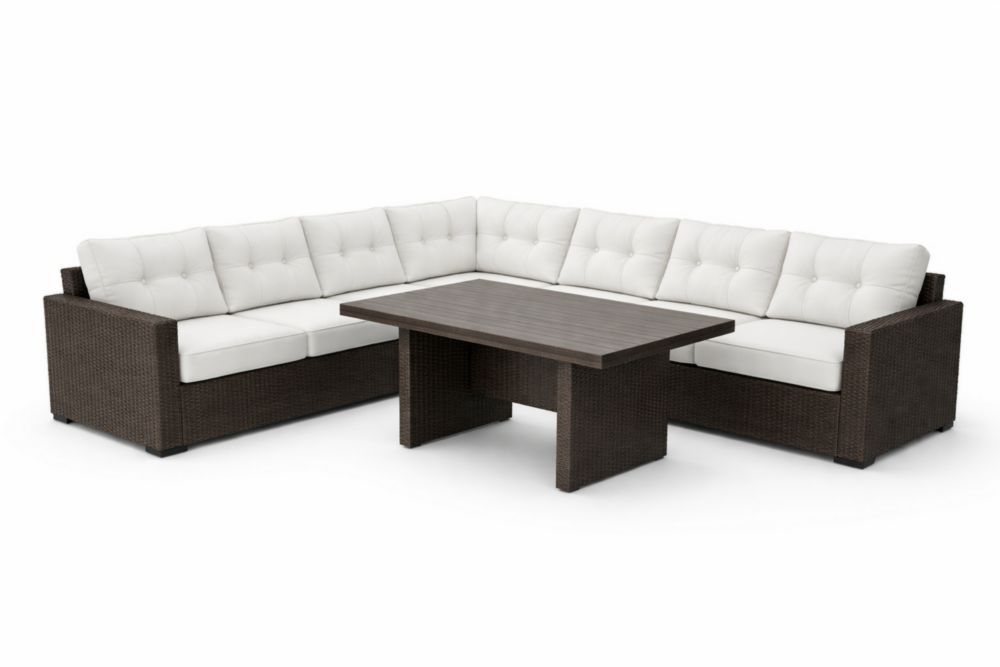 Ensemble canapés d'angle en résine tressée brun avec coussins crème