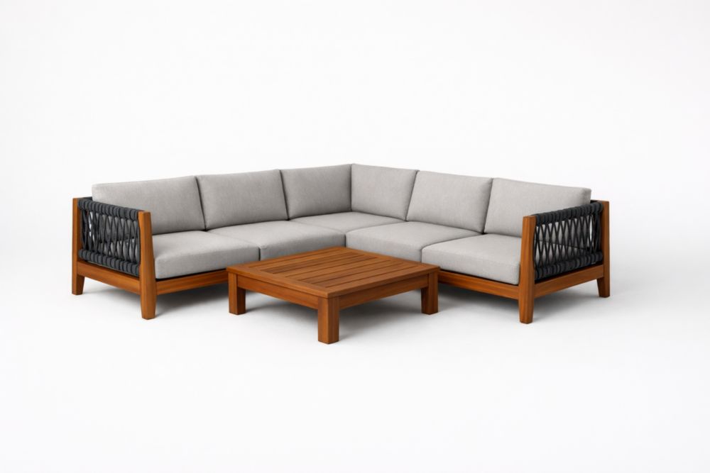 Ensemble de canapé d'angle pour jardin en bois dur massif avec table et coussins gris