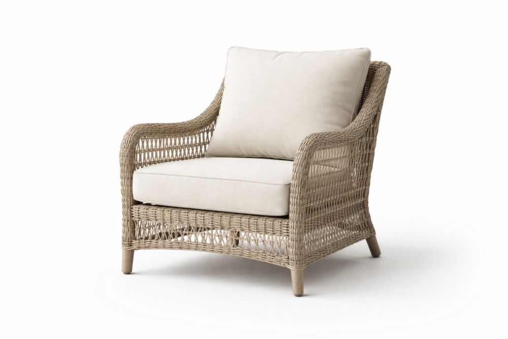 Fauteuil de jardin en rotin avec coussins en lin